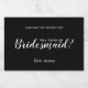 featuring wording "Will You Be My Bridesmaid?" in white modern script font style with details in white modern sans serif font on black background.
