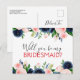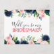 Will you Be My Bridesmaid Navy Blue Pink Floral Announcement Postcard
