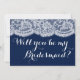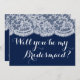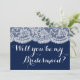 Will You Be My Bridesmaid? Navy Blue & White Lace Invitation