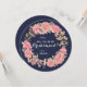 Personalised will you be my bridesmaid watercolor blush pink roses wreath on midnight dark blue circle card. Suitable for modern garden summer floral themed weddings.