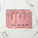 Will you be my Bridesmaid? Bridal shower. Rose pink, glitter drips, sparkle, whimsical, elegant, modern, script, Wedding save the date invitations. Please personalise it with your details.