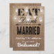 "I can't say "I do" without you!" rustic country bridesmaid flat modern card featuring a rustic brown burlap effect background, elegant mason jar string twinkle lights, the words "EAT, DRINK AND BE MARRIED" and your bridesmaid wording. These easily customisable wedding cards can be changed to suit your requirements, from adding your own personal message, to changing the font and colour.
