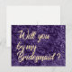 Will You Be My Bridesmaid Violet Velvet Gold Faux Invitation Postcard