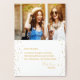 Beautiful gold foil Bridesmaid proposal wedding party card- Front is actual gold foil with gold confetti dots borders and gold gemstones tier wedding cake featured. Bottom reads 'Will You Be My Bridesmaid?', in elegant, calligraphy type, matching gold script. Inside has personalised message in matching gold colour in modern, elegant style requesting your special friend's participation in your wedding day, including personalised names. Message is completely customisable. Inside top has personalised photo (of you and) your prospective bridesmaid, or delete the sample photo completely. Inside has coordinating faux gold foil confetti dots along the outer borders, including overlaid on your photo. Elegant wedding party bridesmaid cards perfect for a formal wedding and gold wedding colours. Edit them for matching bridal party request cards for everyone- maid of honour, flower girl, etc. We have coordinating paper wedding supplies and decor in our Zazzle.com/angela65 shop.