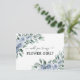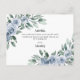 Design features elegant watercolor greenery with boho dusty blue rose floral elements. Design also features a modern typography font layout.