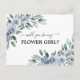 Will You Be My Flower Girl Dusty Blue Rose Floral Postcard