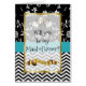 Will you be my Maid of Honour, blue and black floral and chevron striped card.