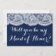 Will You Be My Maid of Honour? Navy Blue & Lace Invitation