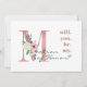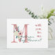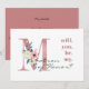 Personalised "will you be my matron of honour?" card with beautiful floral letter design. This elegant bridesmaid proposal card is lettered in shades of dusty rose pink, hunter green and ivory. It features a pink glitter "M", embellished with a pink and ivory bouquet of flowers and foliage. The wording on the front reads "will. you. be. my. Matron of Honour?" in classic typography with a modern twist. The back is pink with handwritten style lettering and the template is set up for you to customise (or delete) the message, as you wish. Please browse our store for coordinating items.
