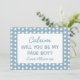 Looking at asking someone to be your page boy for your future wedding, then why not choose these cool blue star page boy cards. This customised invite will make your friend, brother, cousin, nephew, son or whoever else you choose feel that extra special. This invite is easily personalised by clicking on the customise it button under the image where you will be able to change the text, font and size.