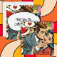 Cute nostalgic feeling Valentine's Day card. This ai illustration is done in a cute retro pop art style. A man kissing a woman's cheek asking her to be his Valentine.
