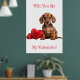 Will You Be My Valentine Dachshund Puppy Heart Poster