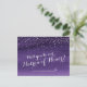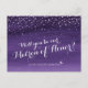 Save the date and ask your friend if they will be your matron of honour with this wedding starry night purple white postcard background sky painted in wash watercolor with a graphic star sparkle overlaid. Original wedding save the date postcard. Customise with names and wedding date to make your request to your matron of honour to be. Perfect for a star studded friend or for a evening wedding event. Part of the starry night wedding set. An elegant exclusive design by Sarah Trett.