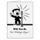Will You be Our Wedding Singer? Invitation features a retro vintage style illustration with a singer at the microphone. Sound waves beam out from the mic. Black and white illustration. Art, image, and verse copyright © Shoaff Ballanger Studios.