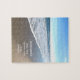 Do you both love the beach and love doing puzzles? This will you marry me puzzle combines both loves. The puzzle features a beautiful photo of the beach with the words, "(Name) Will you marry me? Love, (Name)" written in the sand. This is a fun way to ask that special someone to marry you. Copyright Kathy Henis