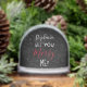A great way to pop the question! Fun snow globe "Will you marry me?" text (front), and custom photo (back). Bold Black and White with Red Accents. Personalise with her name and add the date to the back so she always remembers your Big Day! Valentine's Day and Christmas are two great days to pop the question to your loved one.