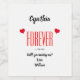 No matter how you ask her to marry you, you can add this FOREVER wine label to the mix for when you want to toast the special occasion. The design features her name at the top with the word FOREVER in red flanked in hearts. The date of your proposal is right below. In addition, the words "Will You Marry me? Love, (Name) also appear. This is a great finale to proposal night. Copyright Kathy Henis