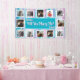Personalised photos proposal banner. Will you marry me sign. Romantic proposal idea! Purple and pink striped background. Romantic way to propose on Valentine's Day.