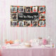 Personalised photos proposal banner. Will you marry me sign. Romantic proposal idea! Beige, red and black flowers. Romantic way to propose on Valentine's Day.