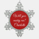 Will You Marry Me red custom script proposal chic Snowflake Pewter Christmas Ornament