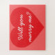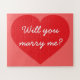 This jigsaw puzzle features a shapely red heart overlaid by the template text, "Will you marry me?" in a white cursive font. Personalise with your girlfriend or boyfriend's name. Customise font style, size, and colour, as well as the background colour.