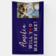 Will you marry me Romantic Proposal Photo Banner. Will you marry me in modern typography with a beautiful red heart on a navy blue background. Add your name and a photo.