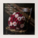 A sweet personalized proposal puzzle. Pretty vintage puzzle with a beautiful bouquet of pink and red roses laying on an old rustic wood chair. You can customize the will you marry me text in the personalize area.
