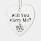 Will you marry me heart ornament for a marriage proposal during Christmas. Elegant porcelain ceramic holiday ornaments in white with black lettering. Featuring Christmas trees and stars.