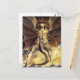 William Blake Red Dragon postcard. Watercolor illustration from 1803-1805. English poet and artist William Blake illustrated the Bible, especially the book of revelations. The Red Dragon and the Woman Clothed with the Sun depicts a red dragon with his back to the viewer standing over a freightened woman with his wings outspread. The woman is clothed with the sun and looks up with her hands clasped in prayer. A beautiful work for fans of William Blake, dragons, bible illustrations, and English art.