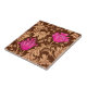 Ceramic tile in a vintage William Morris floral damask pattern of anemone flowers and leaves, digitally enhanced and coloured - light coffee brown leaves, and flowers in shades of deep fuchsia and coral pink on a dark chocolate brown background