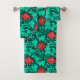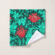 Towel set in a vintage William Morris floral damask pattern of anemone flowers and leaves, digitally enhanced and coloured - turquoise / peacock leaves, and flowers in shades of deep red and coral on a dark teal green background
