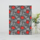 Paper in a vintage William Morris floral damask pattern of anemone flowers and leaves  - light silver grey / grey leaves, and flowers in shades of deep lipstick red on a dark graphite grey background