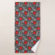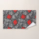 Towel set in a vintage William Morris floral damask pattern of anemone flowers and leaves, digitally enhanced and coloured - light silver grey / grey leaves, and flowers in shades of deep lipstick red on a dark graphite grey background
