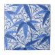 Ceramic tile in a vintage William Morris print of bamboo leaves and tendrils, digitally enhanced and coloured in a soft, textured, pastel crayon effect - shades of deep cobalt blue blue, accented with dark navy / indigo, on a white background