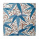 Ceramic tile in a vintage William Morris print of bamboo leaves and tendrils, digitally enhanced and coloured in a soft, textured, pastel crayon effect - shades of soft to deep denim blue, accented with dark red and soft grey, on a white background