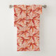 Towel set in a vintage William Morris print of bamboo leaves and tendrils, digitally enhanced and coloured in a soft, textured, pastel crayon effect - shades of medium to dark mandarin orange and rust on a white background