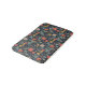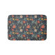 A beautiful, intricate William Morris floral pattern bath mat featuring stylized flowers in salmon, teal, yellow, and cream against a deep navy background. Perfect for adding timeless Arts Crafts decor style to any bathroom. This classic, rich design is ideal for fans of historic textile prints. Created by Simply Farmhouse Press.