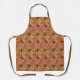 Apron in a vintage William Morris, Art Nouveau, floral print of stylised chrysanthemums, digitally enhanced and coloured, in tan, rust terracotta, and coral, on a deep chocolate brown background