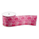 Ribbon in a vintage William Morris, Art Nouveau, floral print of stylised chrysanthemums, digitally enhanced and coloured, in shades of deep fuchsia pink, azalea pink, and burgundy, on a pale pink background