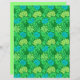 Paper in a vintage William Morris, Art Nouveau, floral print of stylised chrysanthemums, in pastel and deep lime green and aqua, on an emerald green background