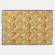 Throw blanket in a vintage William Morris, Art Nouveau, floral print of stylised chrysanthemums, digitally enhanced and coloured, in shades of mustard gold, caramel brown, and copper, on a cream background