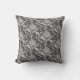 Throw pillow in a vintage William Morris damask pattern of artichoke plants and leaves, in light silver grey / grey and medium grey, against a dark graphite grey background, digitally enhanced and coloured
