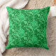 Throw pillow in a vintage William Morris damask pattern of artichoke plants and leaves, in emerald and pale mint green, against a dark emerald green background, digitally enhanced and coloured