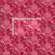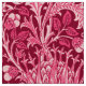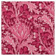Fabric in a vintage William Morris damask pattern of artichoke plants and leaves, in fuchsia and light pink, against a deep burgundy pink background, digitally enhanced and coloured