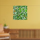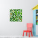 Print in a William Morris Art Nouveau pattern of lemons, pomegranates, and peaches, with blossoms, on leafy branches - fruit in lime green and coral orange, with green leaves, against a patterned, lime green and white background