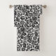 Towel set in a vintage William Morris floral damask pattern, digitally enhanced and coloured, in black on a white background