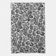 Kitchen towel in a vintage William Morris floral damask pattern, digitally enhanced and coloured, in black on a white background