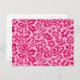 Postcard in a vintage William Morris floral damask pattern, digitally enhanced and coloured, in deep fuchsia pink on a pastel pink background
