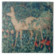 Ornate Craftsman era, floral vintage, fine art pattern tapestry design by William Morris.Pair of deer in a forest of foliage studded with wildflowers . Wild tulips and Lychnis. Greens range from mid to spruce.
