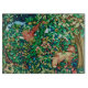 Cutting Board in a William Morris tapestry design of a fox and a pheasant in flight in a fantasy forest setting of leafy green foliage and fruit trees